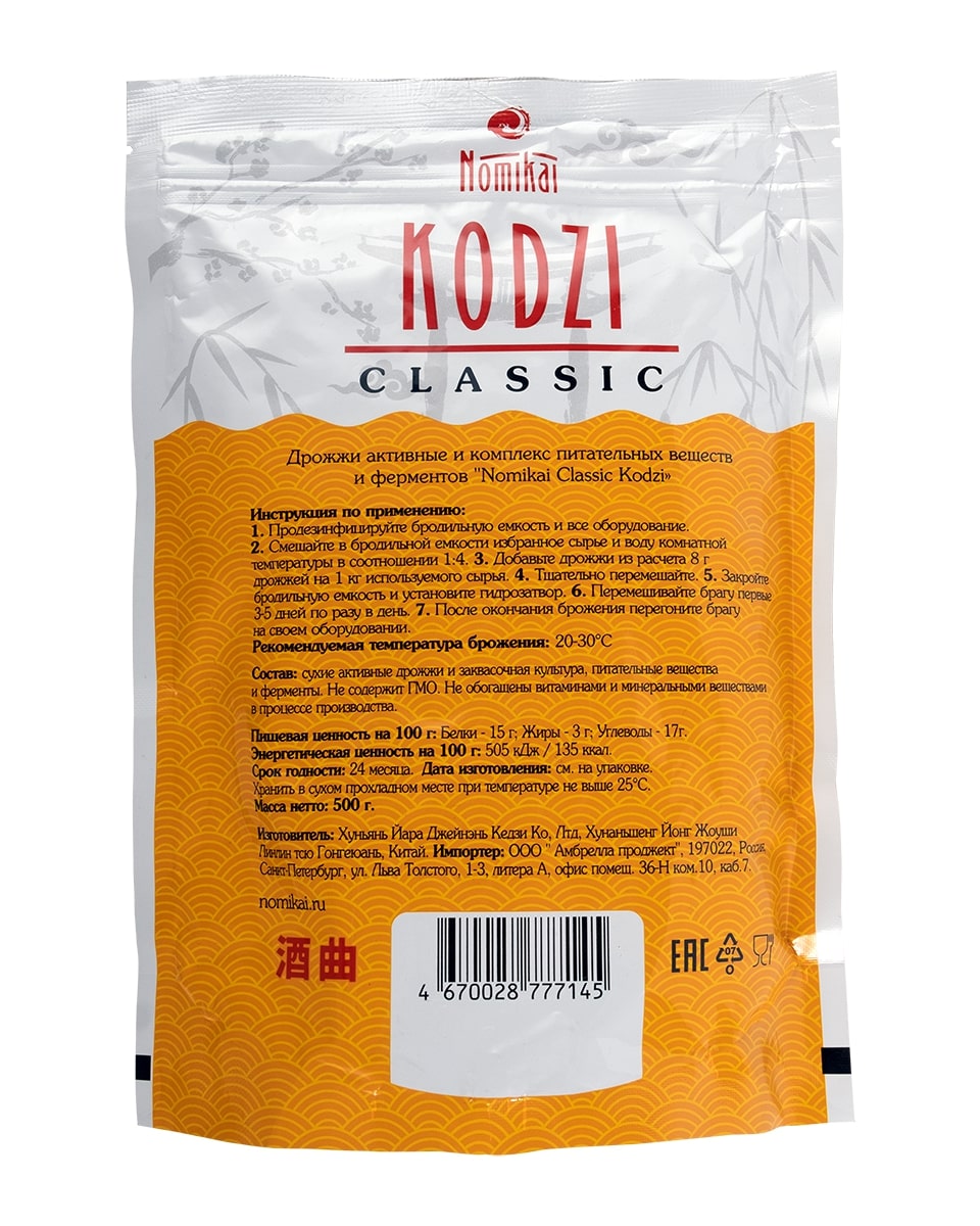 Дрожжи Nomikai "Classic" Kodzi 500 гр- это товар без которого сложно представить процесс самогоноварения. Любой самогонщик знает, как важна каждая деталь в этом процессе.