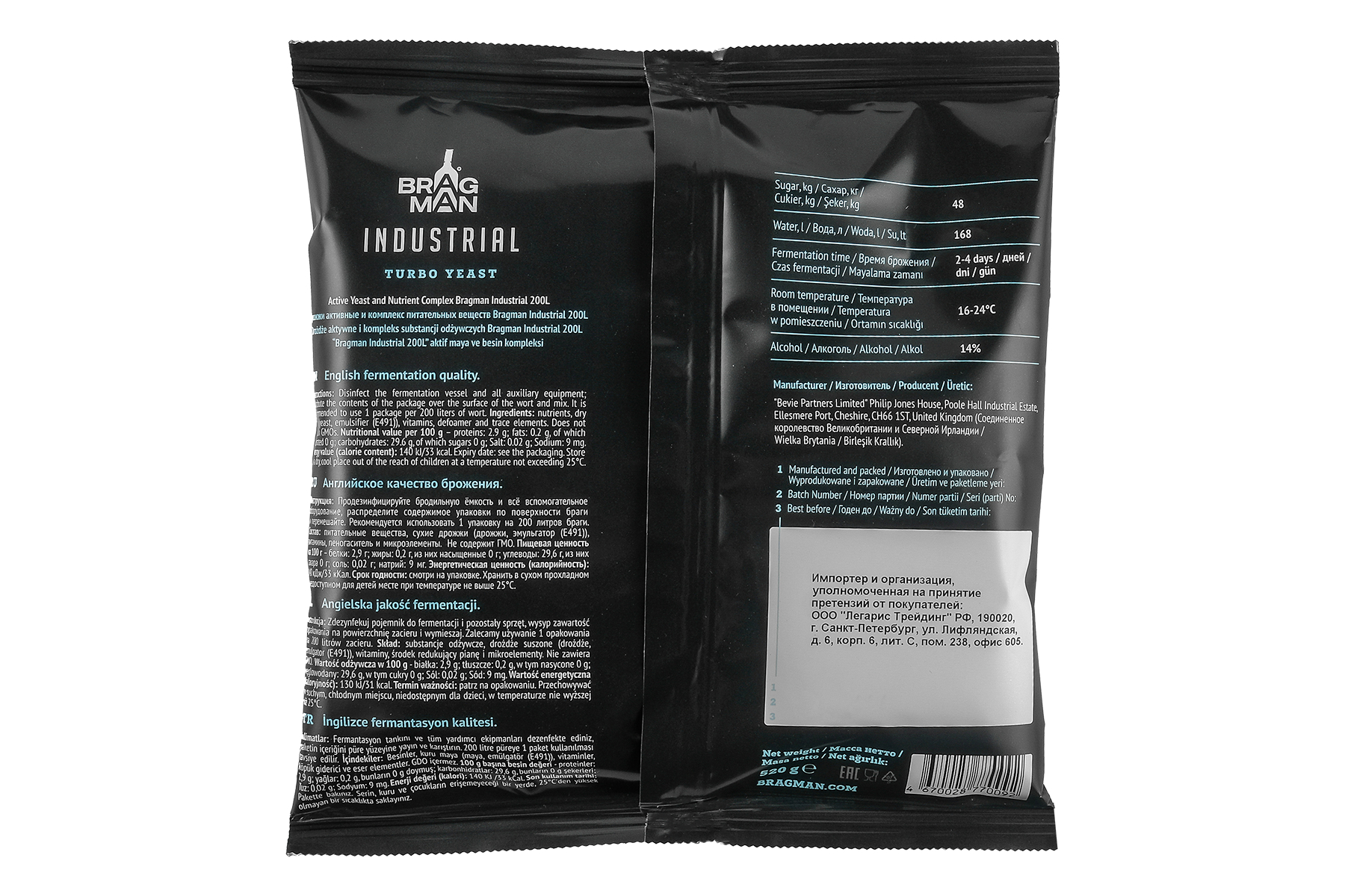 Турбо дрожжи Bragman INDUSTRIAL, на 200 л, 520 гр