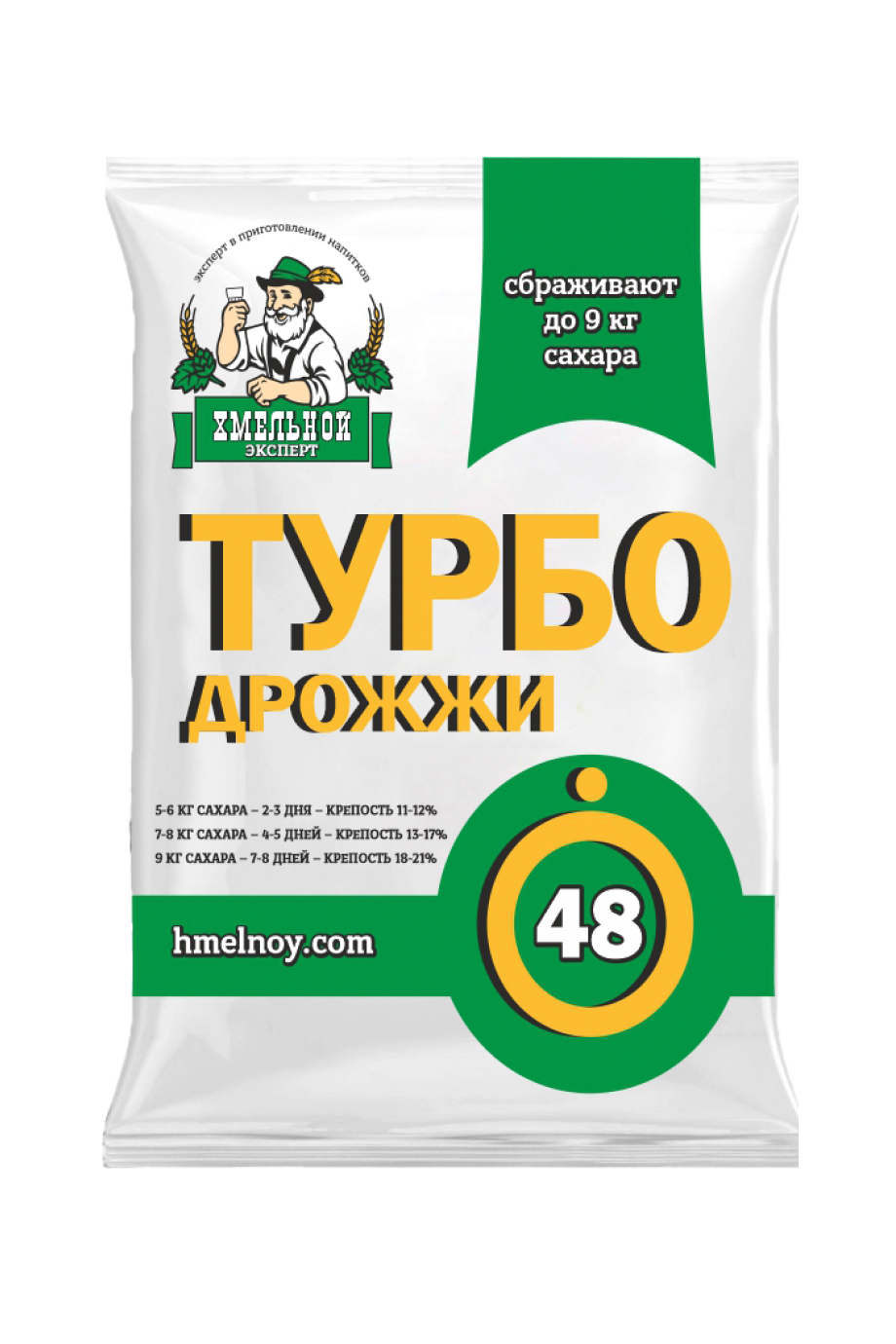 Дрожжи Хмельной Эксперт «Турбо 48» являются идеальным решением как для создания продукта с высоким содержанием крепости (до 21%), так и для быстрого брожения до 14%.