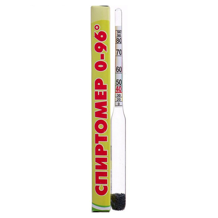Спиртомер бытовой универсальный 0-96% - прибор, определяющий объемную долю этилового спирта, содержащегося в водном растворе. Данный спиртомер показывает процентное содержание этилового спирта в диапазоне от 0 до 96%.Для определения процентного содержания этилового спирта поместите сухой и чистый Спиртомер 0-96% в емкость с жидкостью таким образом, чтобы он свободно плавал в ней, не касаясь стенок сосуда.Данный прибор подходит только для не газированных жидкостей, прошедших через дистилляцию или ректификацию. Не подходит для измерения крепости пива и вина.