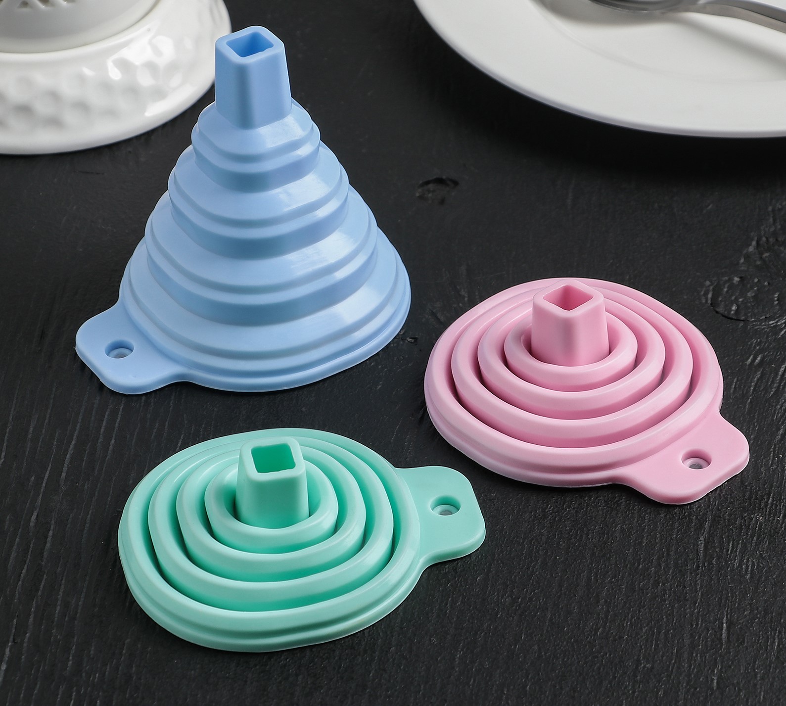 Складная силиконовая воронка имеет уникальную конструкцию и подходит для емкостей с различным диаметром горлышка. Аксессуар легко складывается и занимает минимум места при хранении.