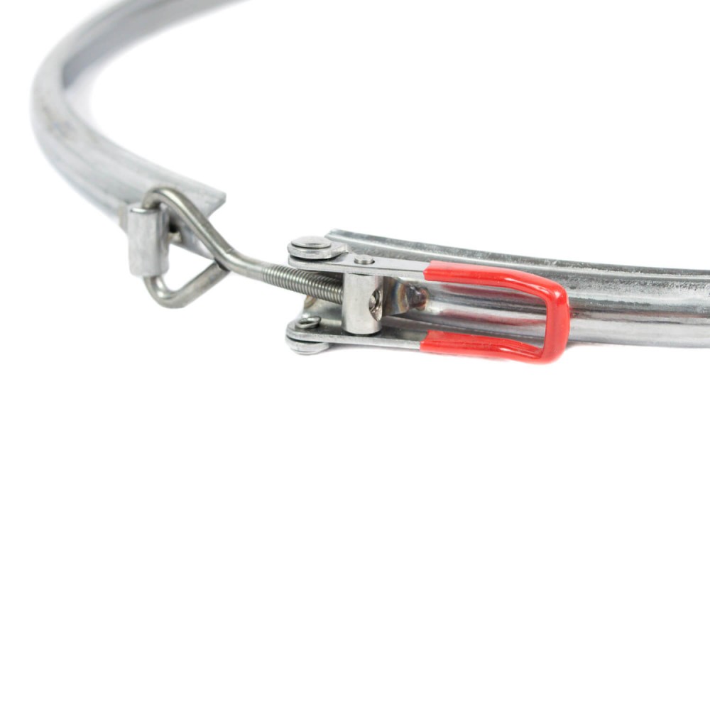 Обруч выполнен из нержавеющей стали и подходит для котла объёмом 12 литров. Имеет замок позволяющий регулировать диаметр обжима, поэтому может быть использован для котлов разных производителей, котлы которых подходят по диаметру.