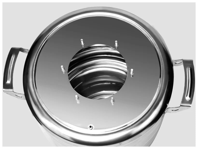 Силиконовая прокладка и барашки герметично крепят дистиллятор к баку и не боятся высоких температур.