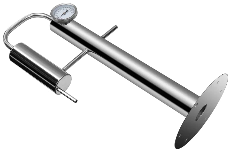 Cквозь мини царгу проводится вода к холодильнику и в верхней части устанавливается биметаллический термометр. Все эти элементы обеспечивают частичный процесс ректификации.
