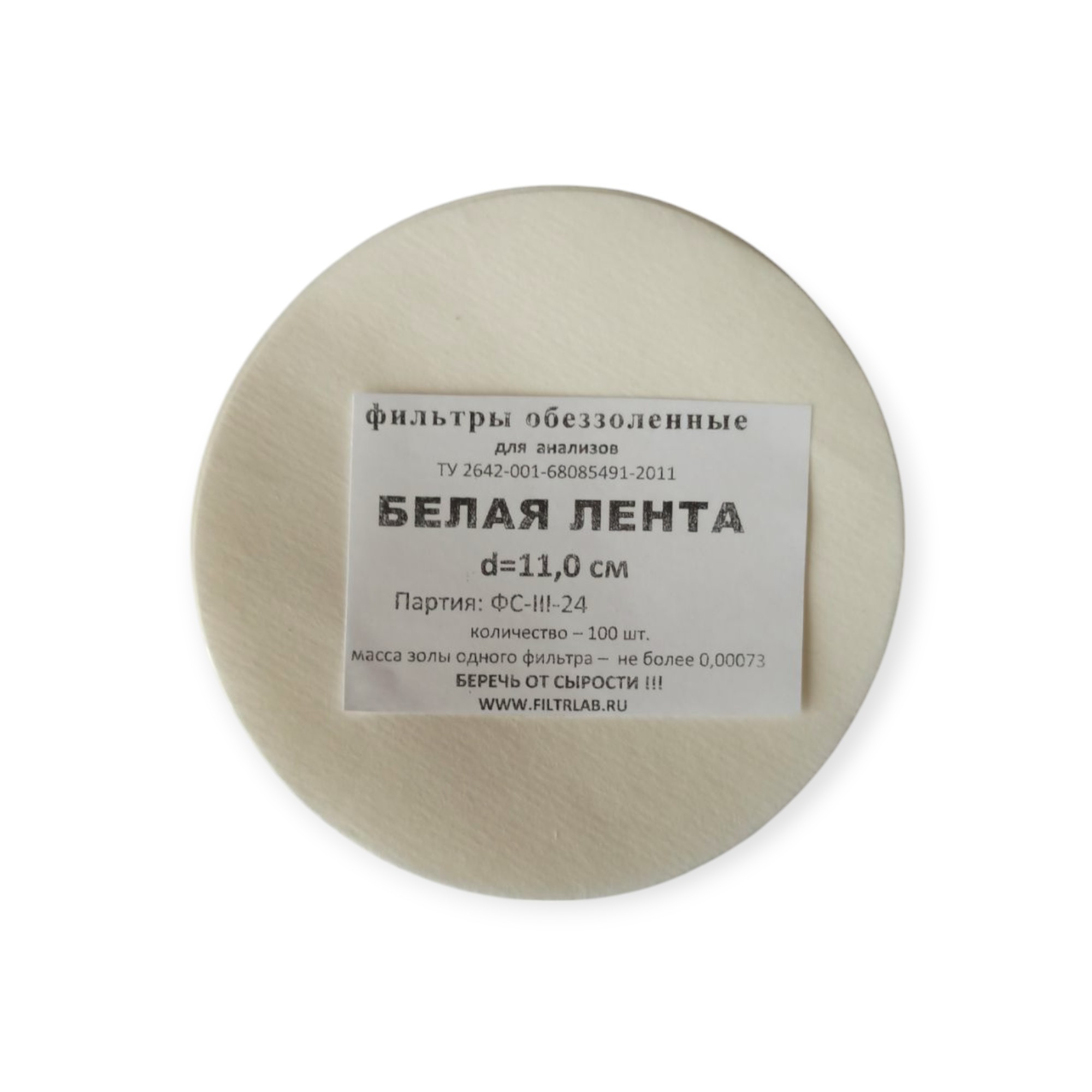 Обеззоленный фильтр белая лента d110 мм
