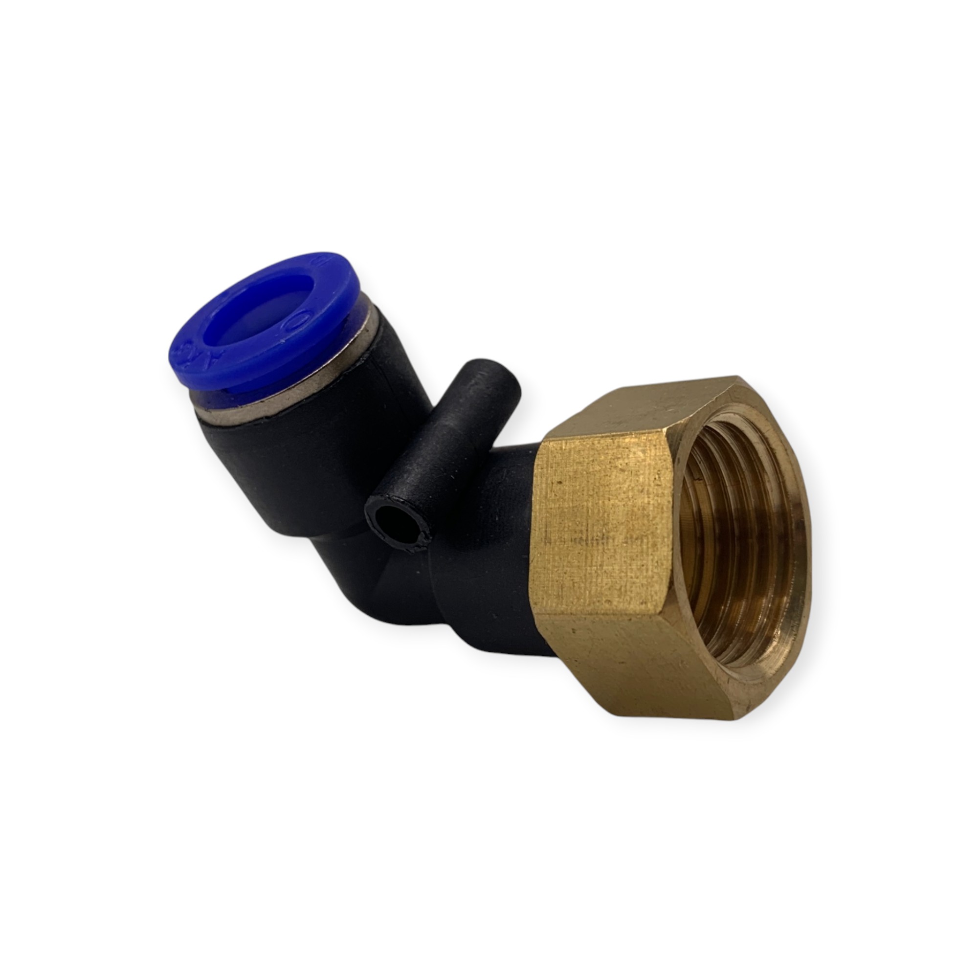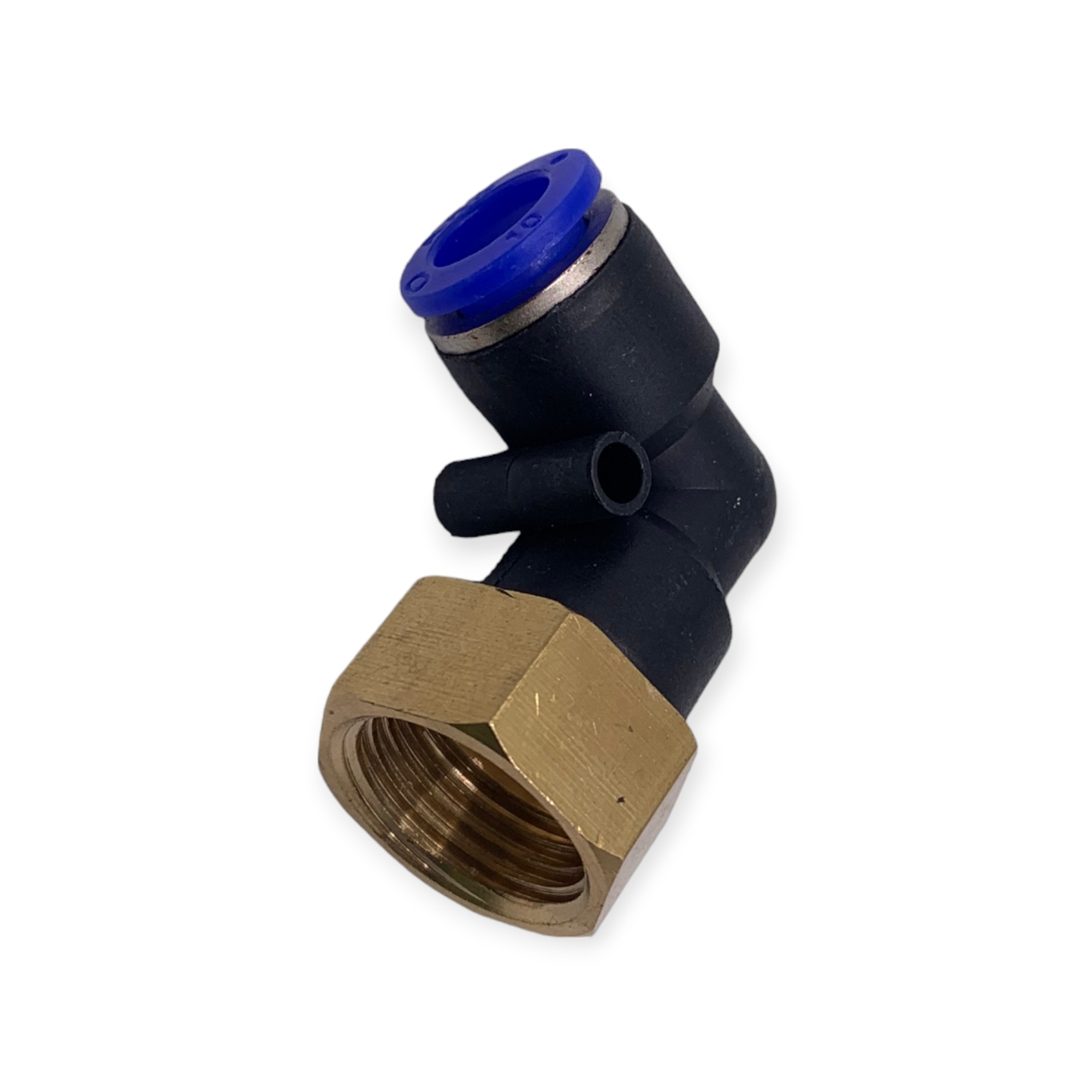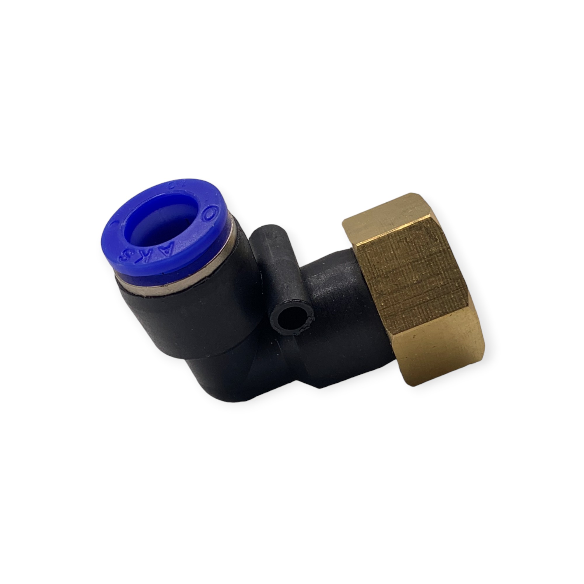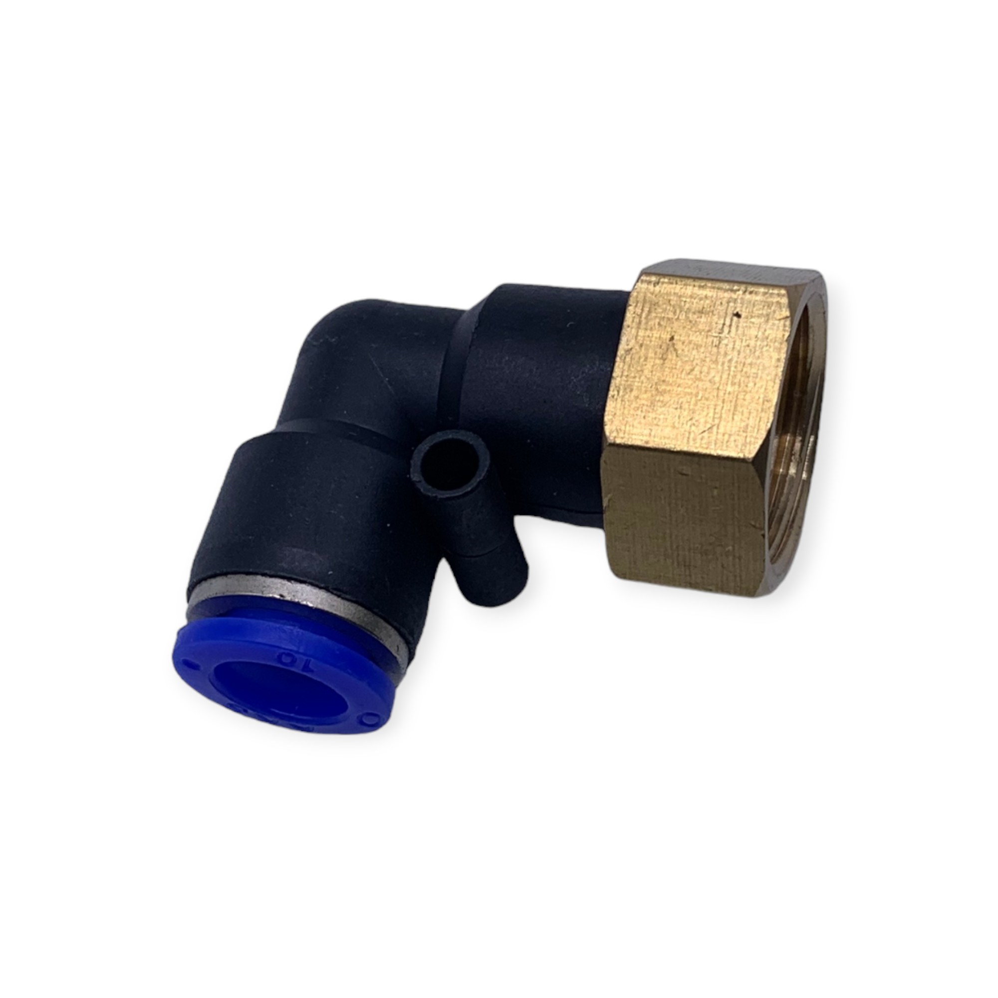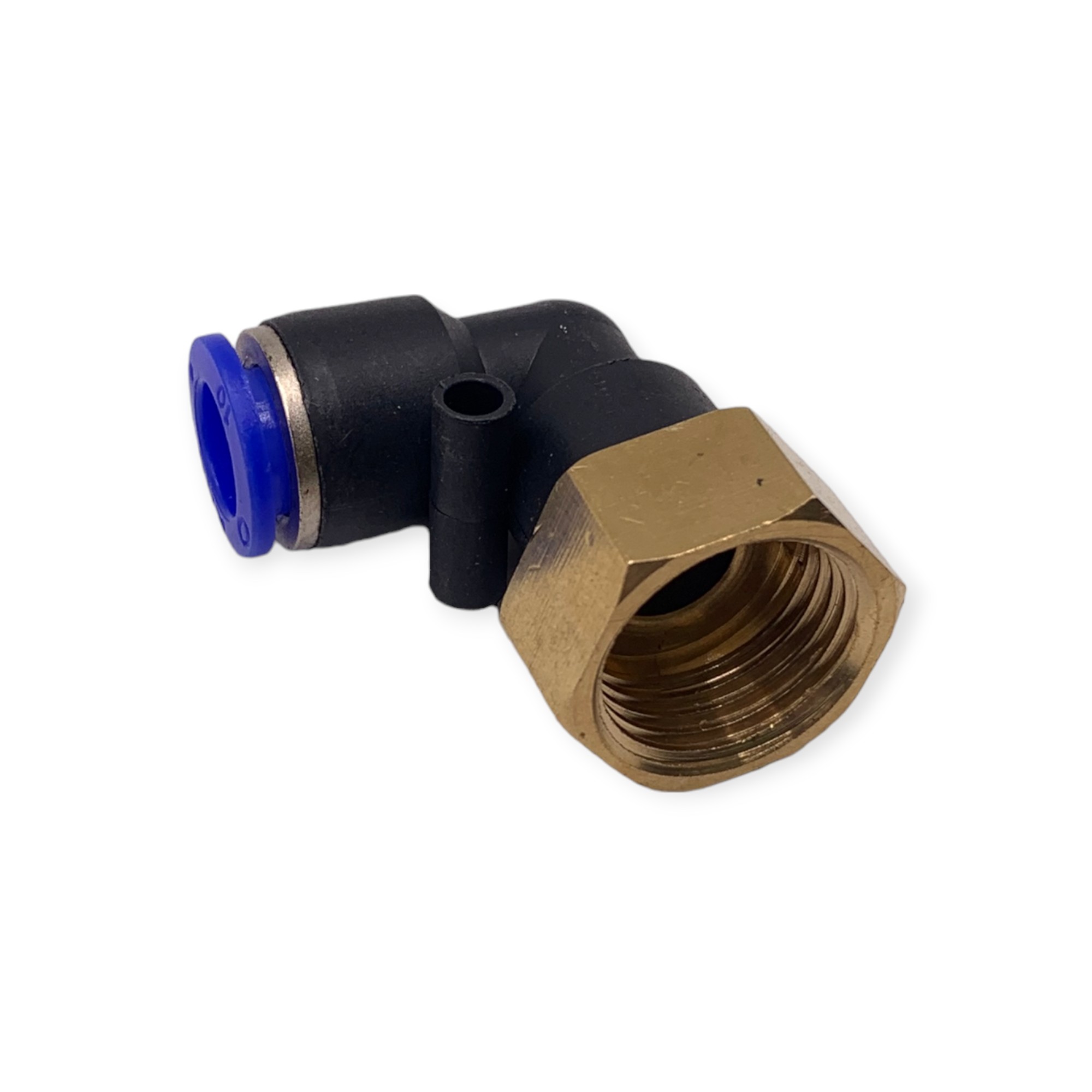 Фитинг быстросъемный УГЛОВОЙ для пневмошлангов МАМА латунь 10*6 мм - резьба 1/2
