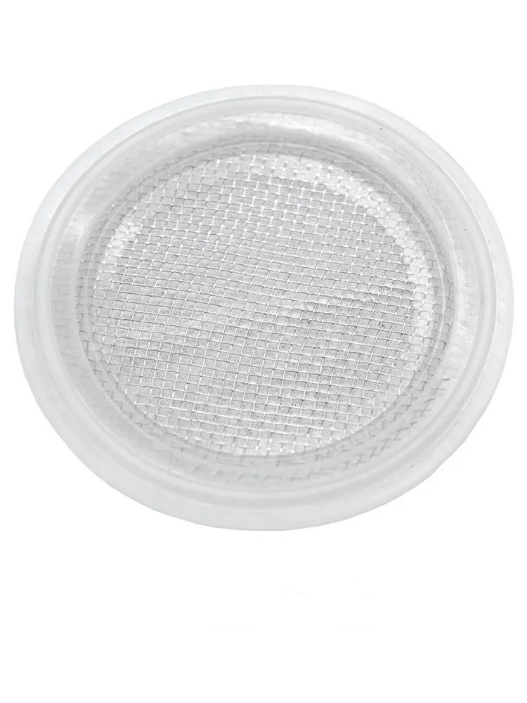 Прокладка выполнена из силикона, который плотно прилегает к быстросъемному соединению, обеспечивая его герметичность. Сеточка сделана из качественной нержавеющей стали, позволяющей безопасно использовать ее в работе с спиртосодержащим, молочным сырьем, винами, пивом и прочими пищевыми средами. Диаметр подходит для использования с кламповым соединением 2 дюйма.