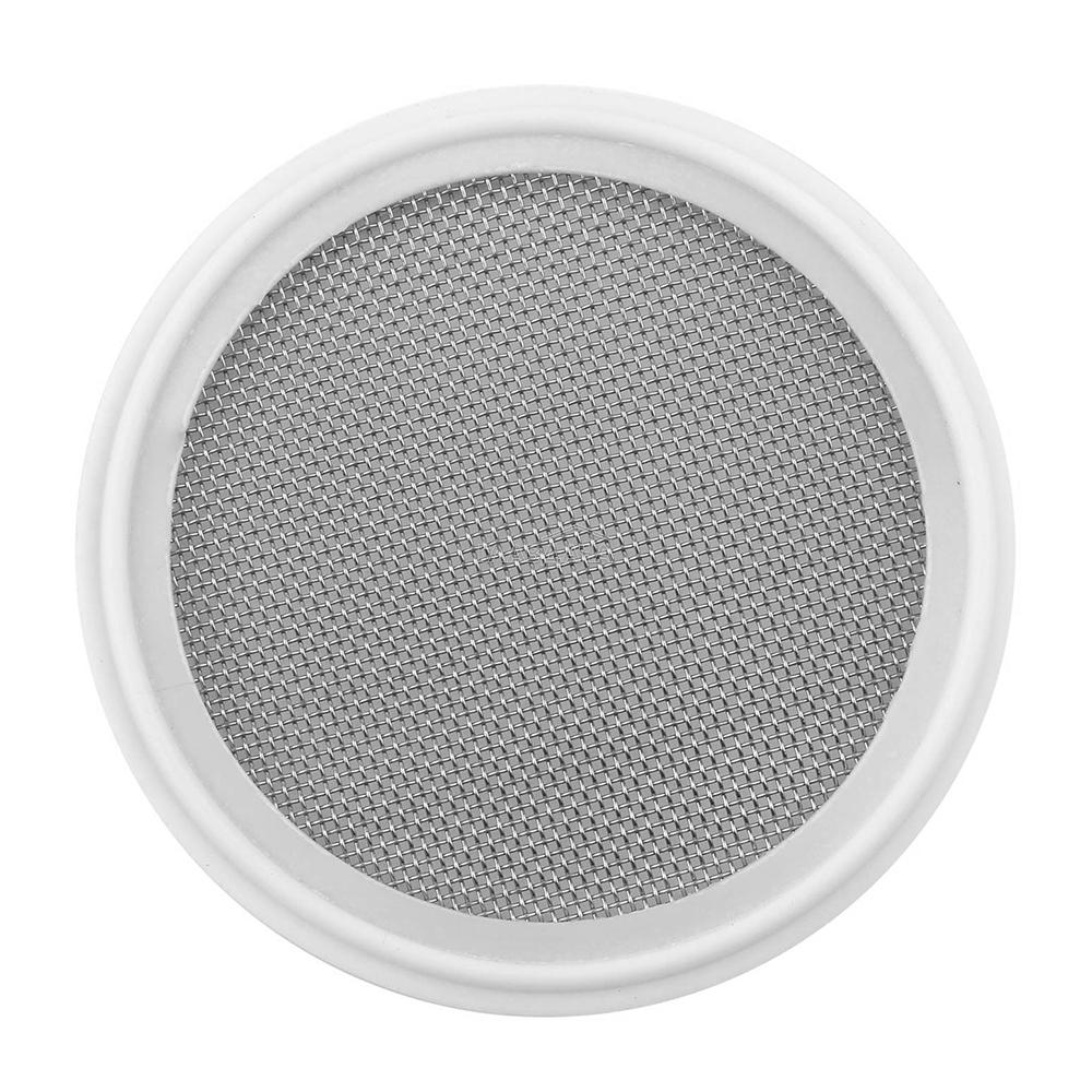 Прокладка выполнена из силикона, который плотно прилегает к быстросъемному соединению, обеспечивая его герметичность. Сеточка сделана из качественной нержавеющей стали, позволяющей безопасно использовать ее в работе с спиртосодержащим, молочным сырьем, винами, пивом и прочими пищевыми средами. Диаметр подходит для использования с кламповым соединением 3 дюйма.