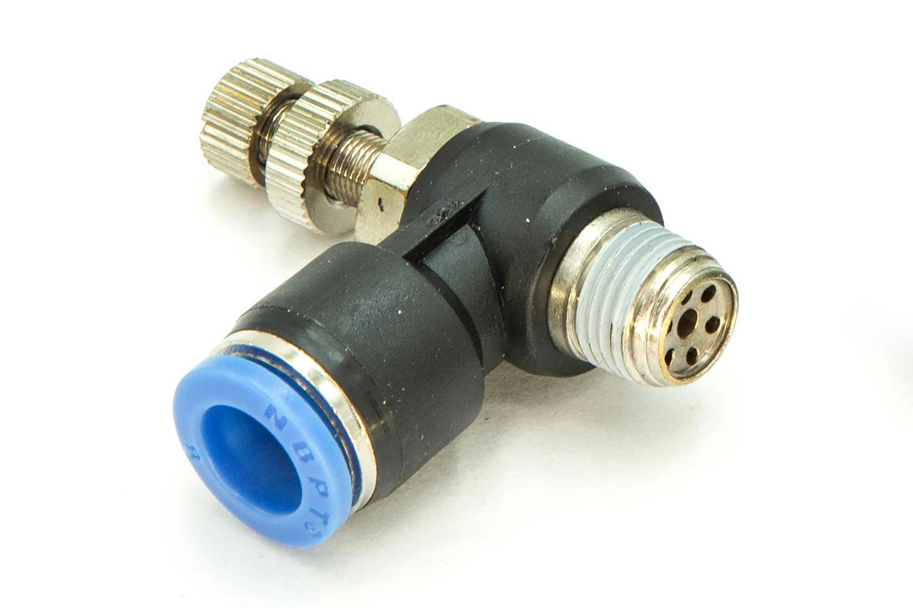 Кран игольчатый Угловой с наружной резьбой 1/4 под пневмошланг 10 мм