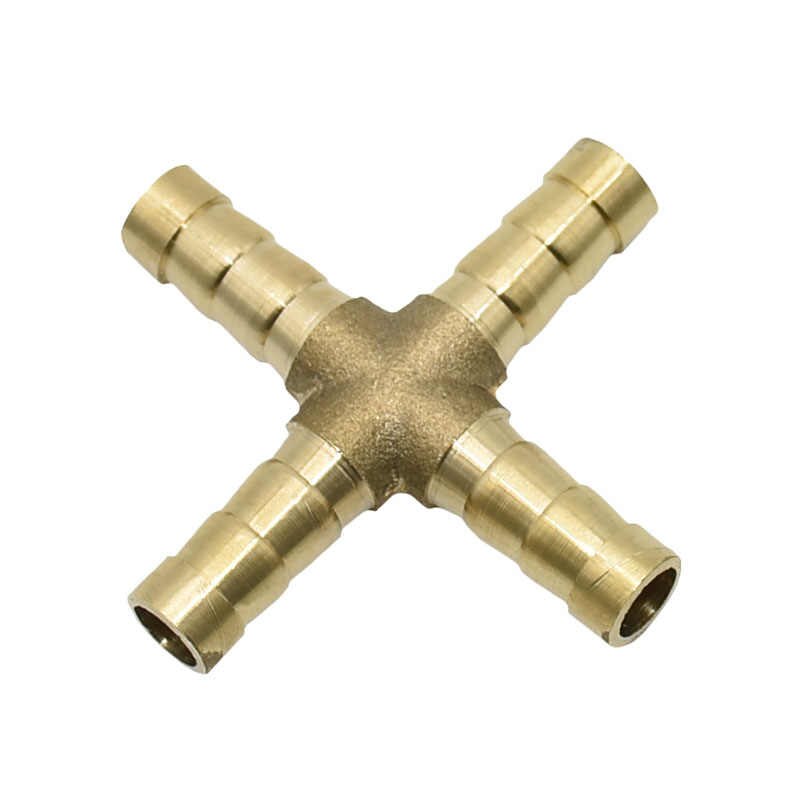 Штуцер-соединитель крестовина изготовлена из латуни и предназначена для соединения между собой 4 шлангов и разведения их в четырех направлениях,