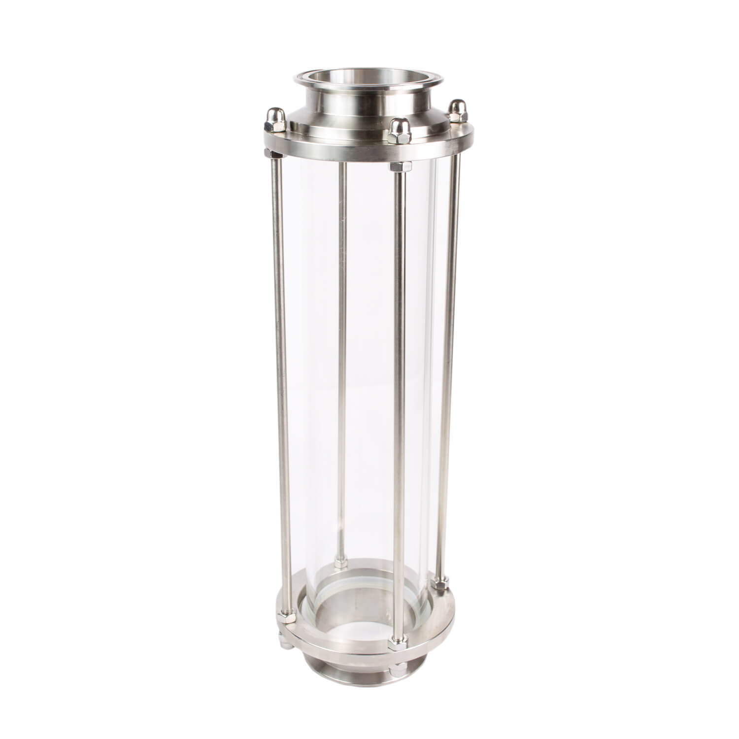 Диоптр смотровой 3 дюйма высотой 360 мм для самогонного аппарата - удобное приспособление для визуального контроля приготовления дистиллята в домашних условиях. Необходимо для понимания того, как интенсивно кипит брага и как испаряются пары спирта. Имеет кламповые установочные соединения размером 3 дюйма, для модернизации аппаратов, имеющих аналогичные установочные соединения. Устанавливается диоптр после перегонного куба и до холодильника. Диоптр можно использовать как стеклянную царгу. Разместив внутрь насадку Панченкова или СПН медную или стальную, она сильно повышает очистку дистиллята при перегоне, а через кварцевое стекло диоптра виден сам процесс перегонки и прохождения паров спирта через плотную сетку Панченкова или Спирально Призматическую Насадку.