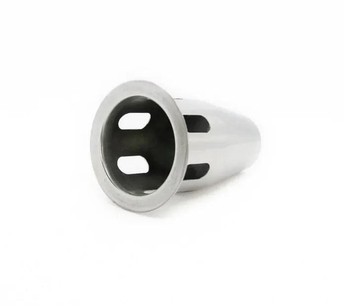 Направляющий конус служит удобным приспособлением для отвода флегмы со стенок диоптра или царги в середину. За счет конусообразной формы и прорезей по поверхности конуса, происходит более равномерное распределение стекающей вниз флегмы. Увеличивает эффективность работы колонны. Подходит для узлов отбора по жидкости и для орошения насадок в царге самогонного аппарата, повышает выход и крепость спирта.