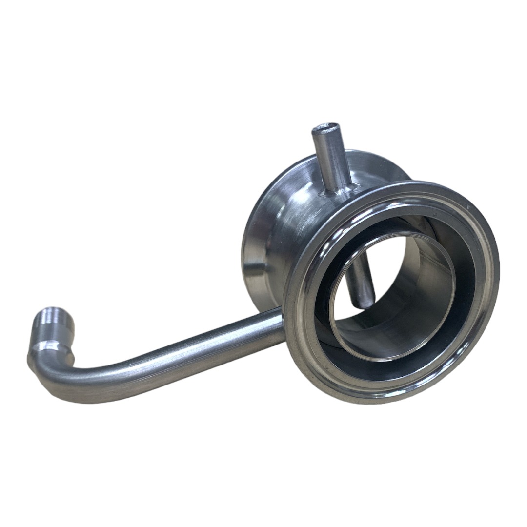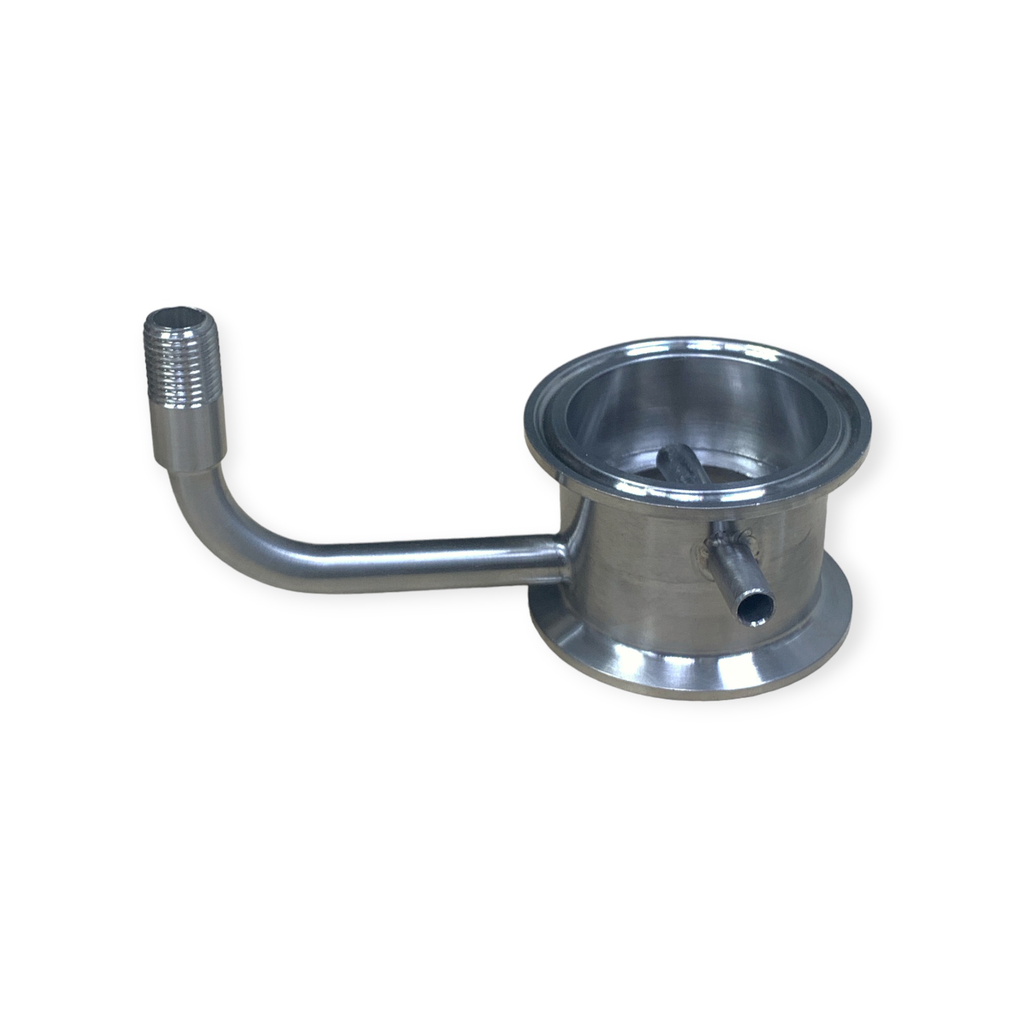 Имеет двустороннее кламповое соединение 2 дюйма, гильзу под термометр и выход с наружной резьбой ¼ под игольчатый кран или автоматику