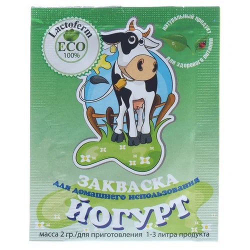 Закваска Йогурт Lactoferm ECO 5 пакетов по 2 грамма на 5-15 литров молока.